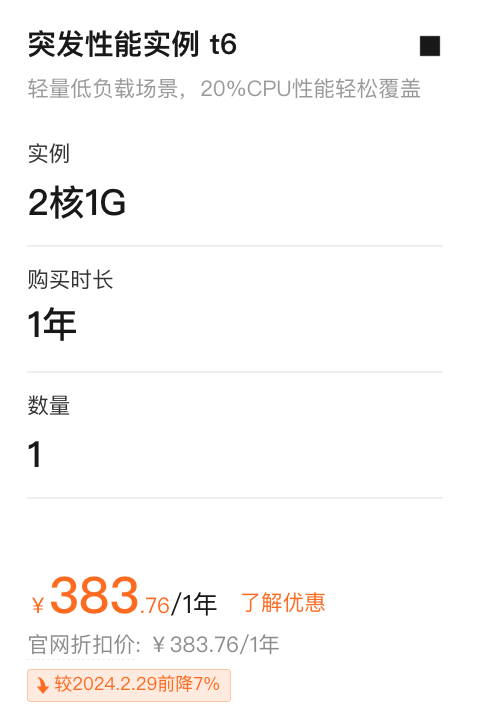 • 相比上一代突发性能实例规格族t5,性价比进一步提升